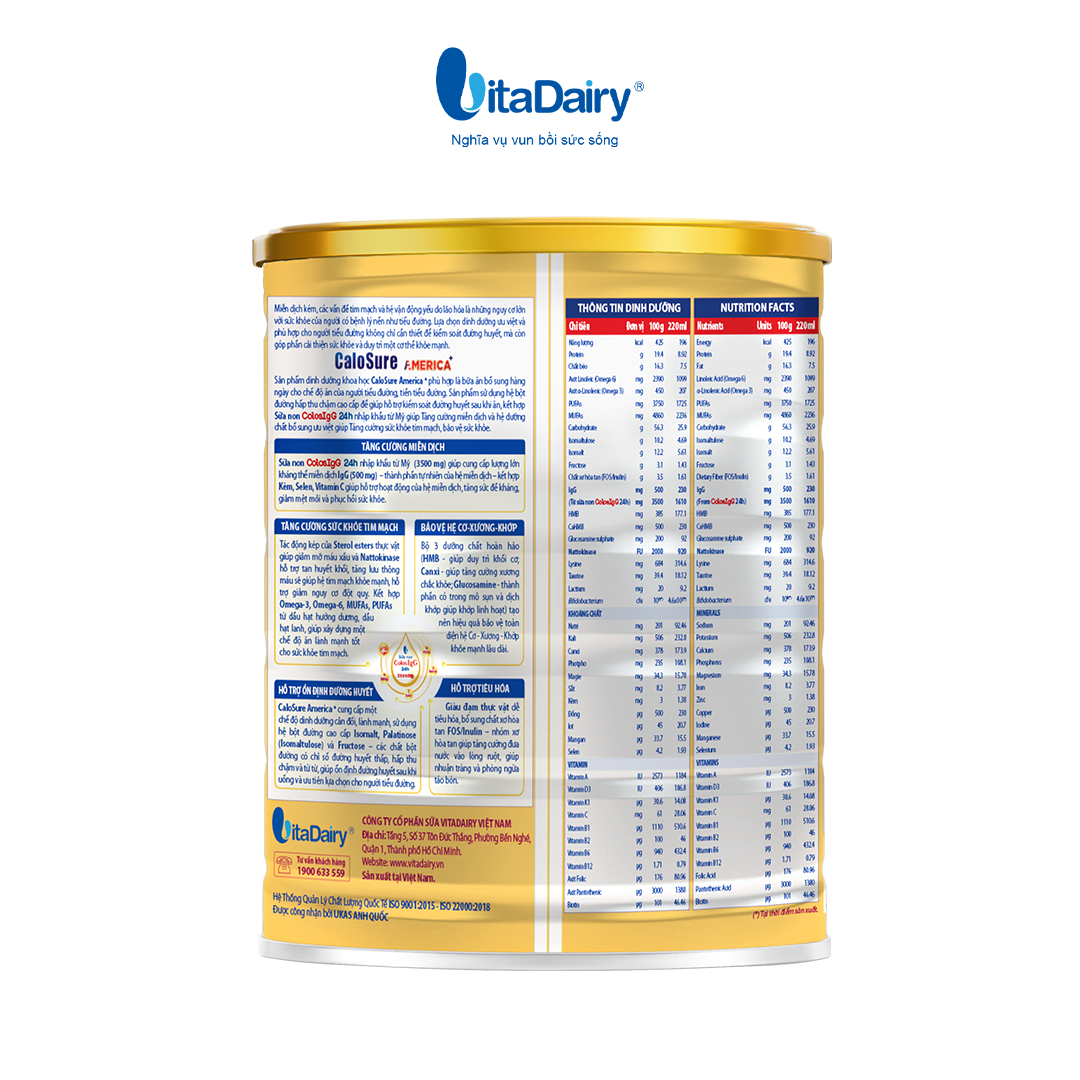 Combo 2 Sữa bột CaloSure America+ 800g (Tiểu đường) - VitaDairy