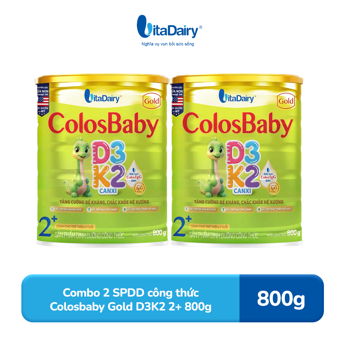 Combo 2 Sữa bột Colosbaby Gold D3K2 2+ 800g, có chứa sữa non, bổ sung canxi hỗ trợ phát triển tầm vóc - VitaDairy