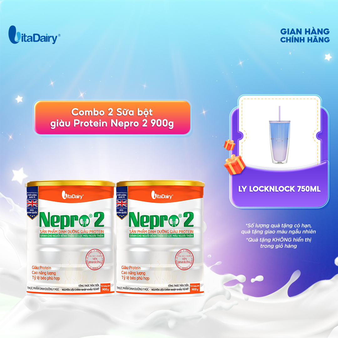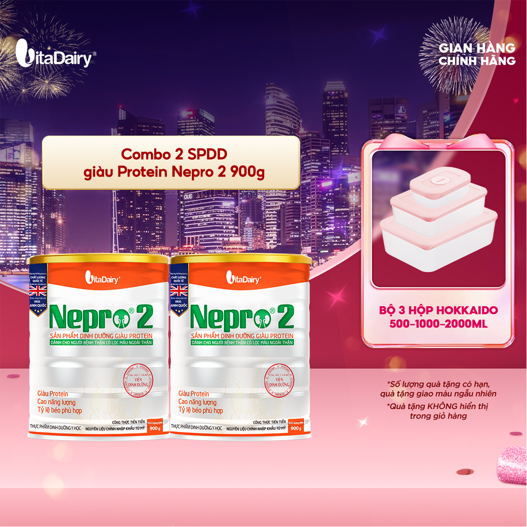 Combo 2 Sữa bột Nepro 2 900g phù hợp với người cần lưu ý đến chức năng thận - VitaDairy