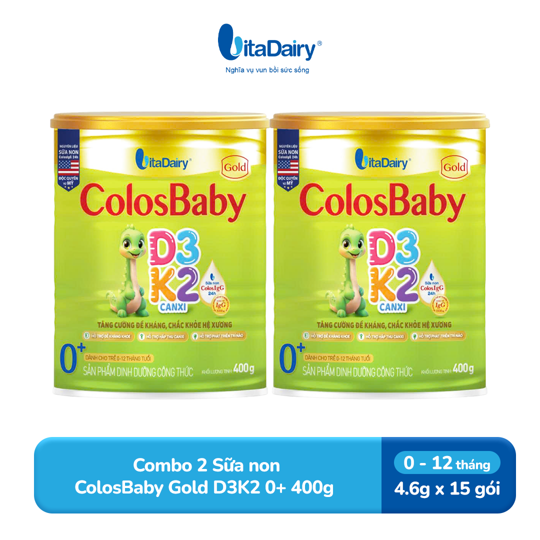 Combo 2 SPDD công thức Colosbaby Gold D3K2 0+ 400g