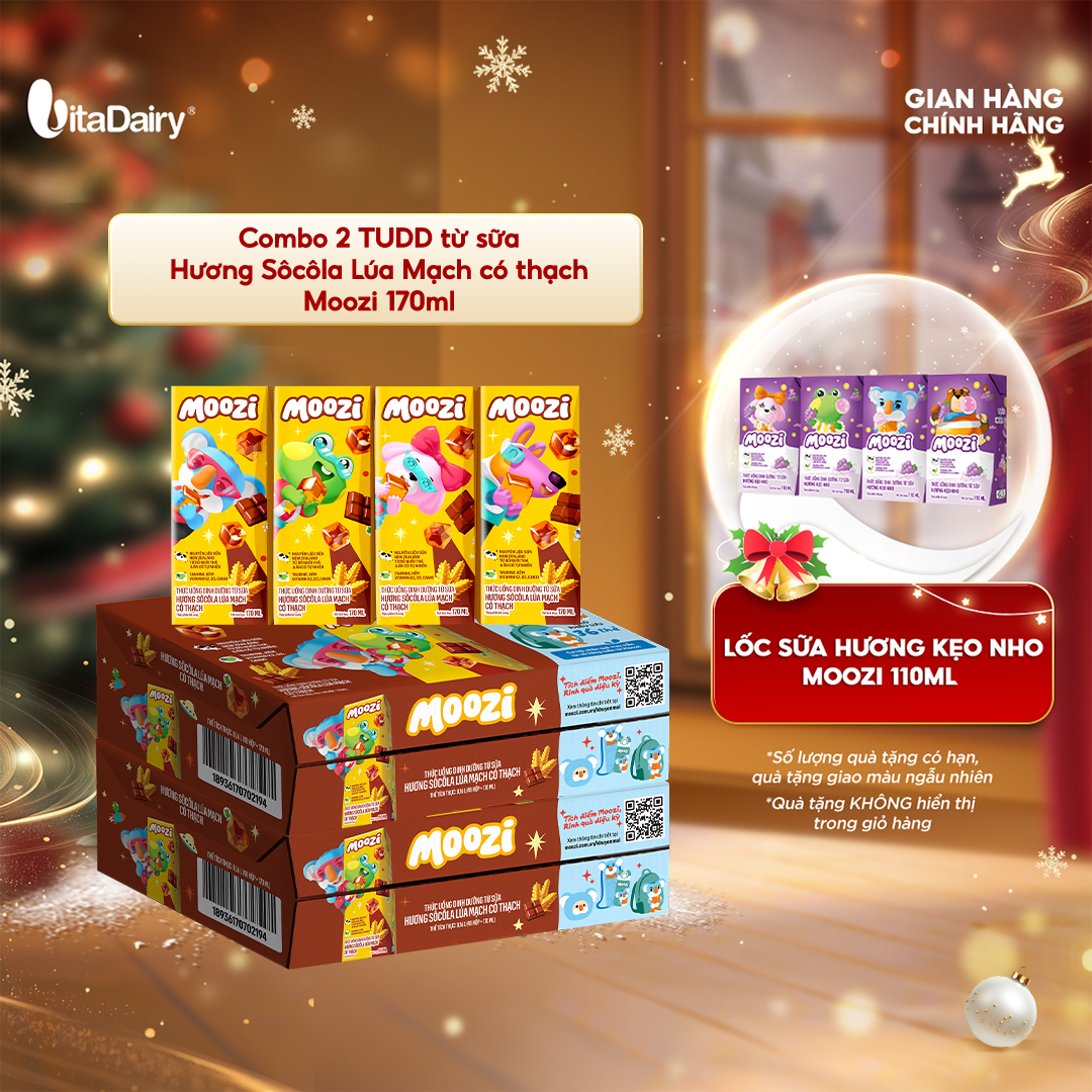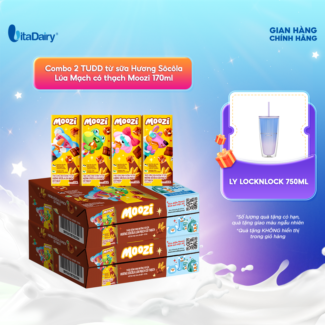 Combo 2 Thùng thức uống dinh dưỡng từ sữa Hương Sôcôla Lúa Mạch có thạch Moozi 170ml