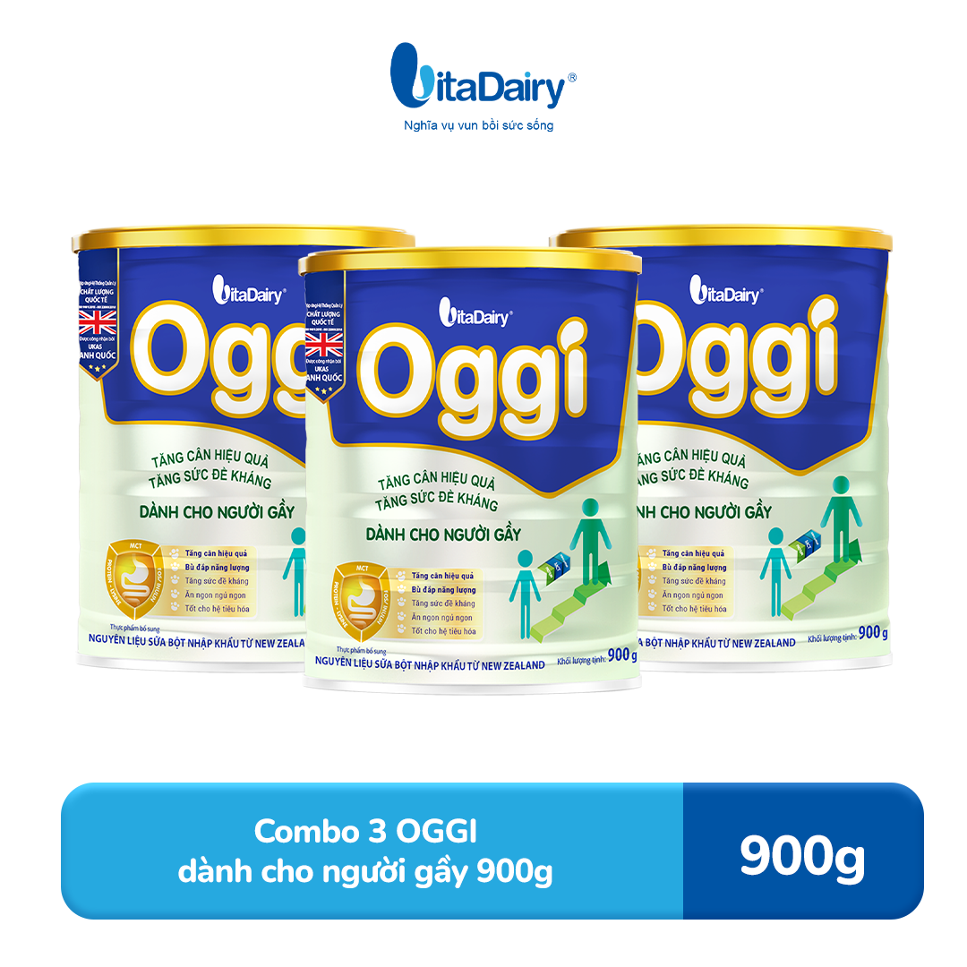 Combo 3 Sữa bột OGGI 900g hỗ trợ dinh dưỡng cho người cần tăng cân và duy trì vóc dáng - VitaDairy