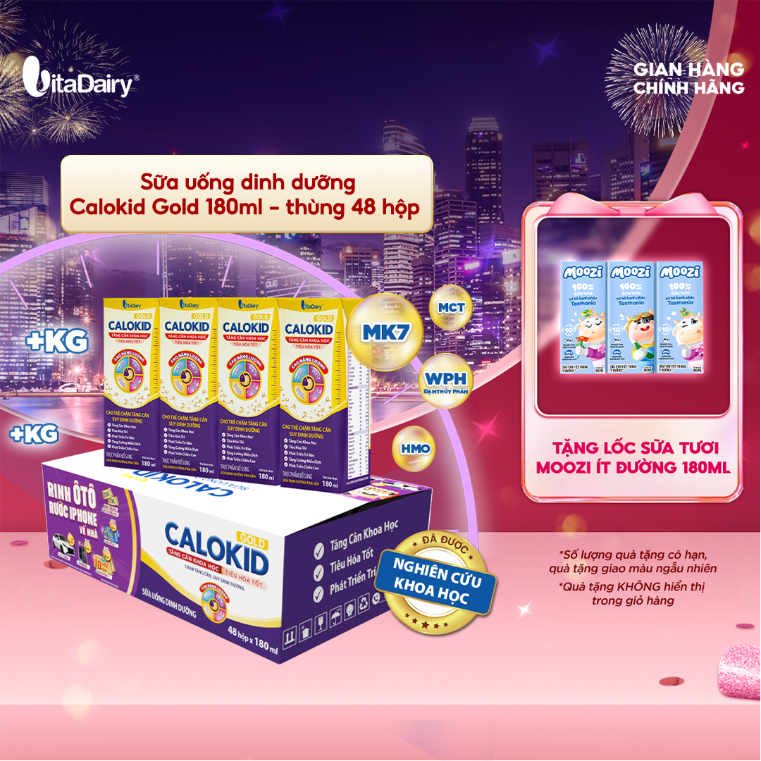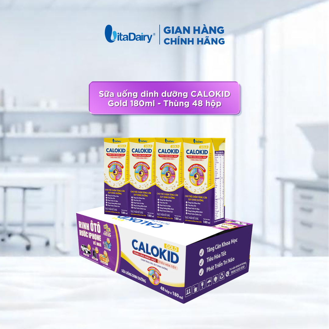 Sữa uống dinh dưỡng Calokid Gold 180ml - thùng 48 hộp - VitaDairy