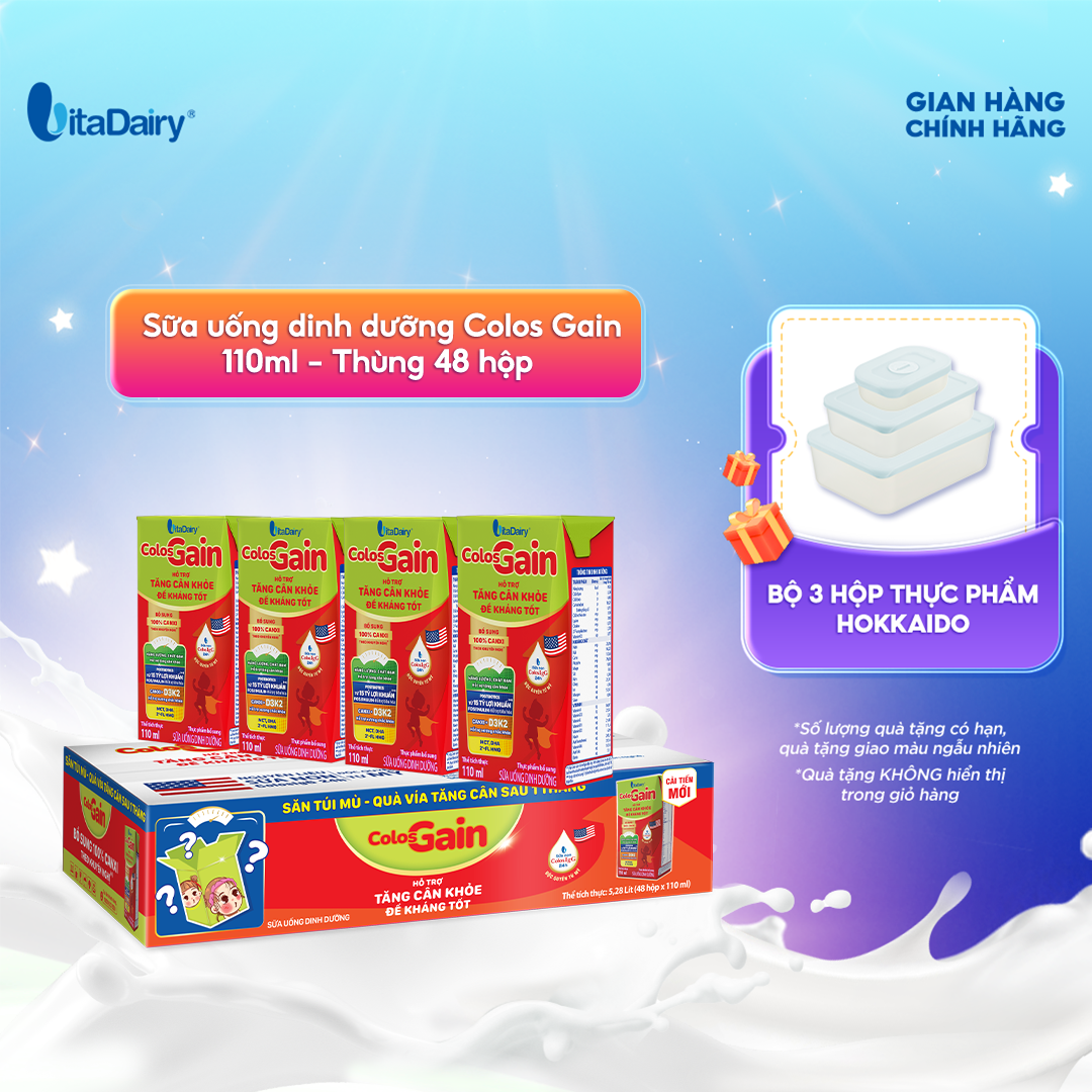 Sữa uống dinh dưỡng ColosGain 110ml cải tiến - thùng 48 hộp - Vitadairy