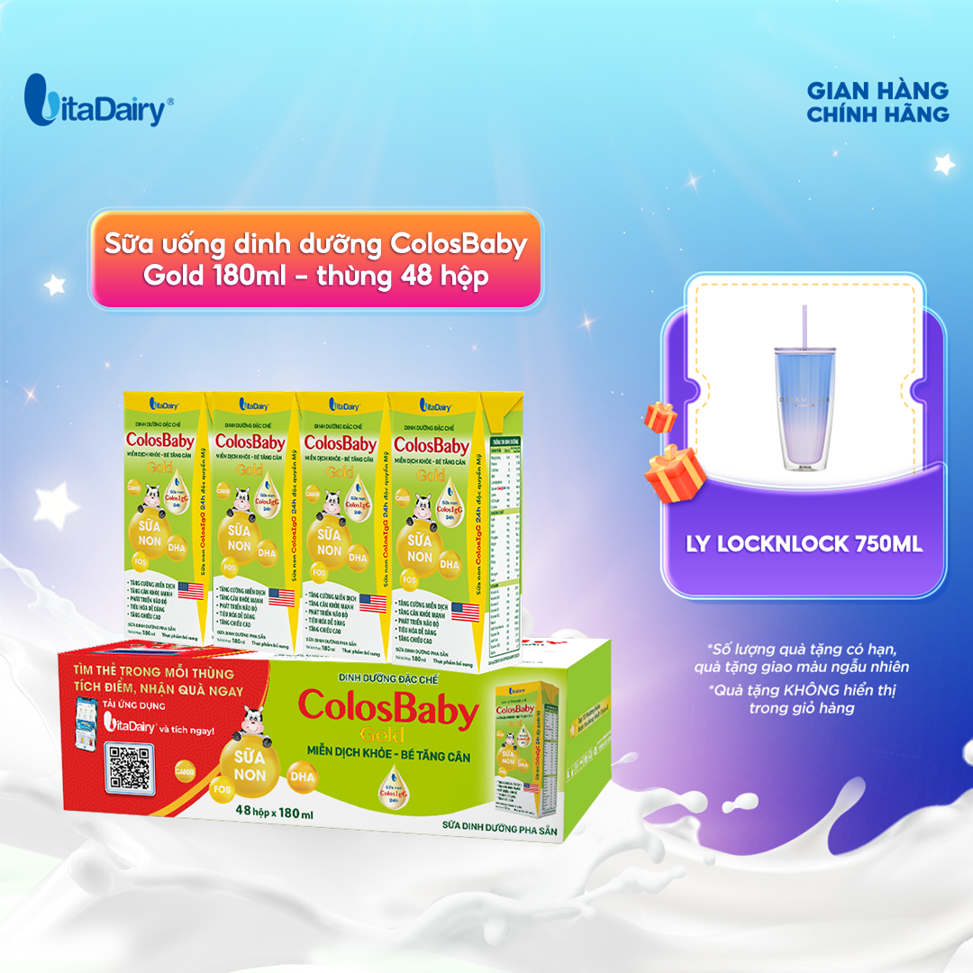 Sữa uống dinh dưỡng Colosbaby Gold 180ml - thùng 48 hộp - VitaDairy