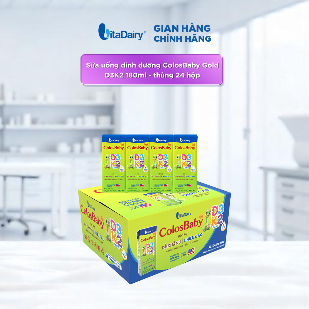 Sữa uống dinh dưỡng ColosBaby Gold D3K2 180ml - thùng 24 hộp