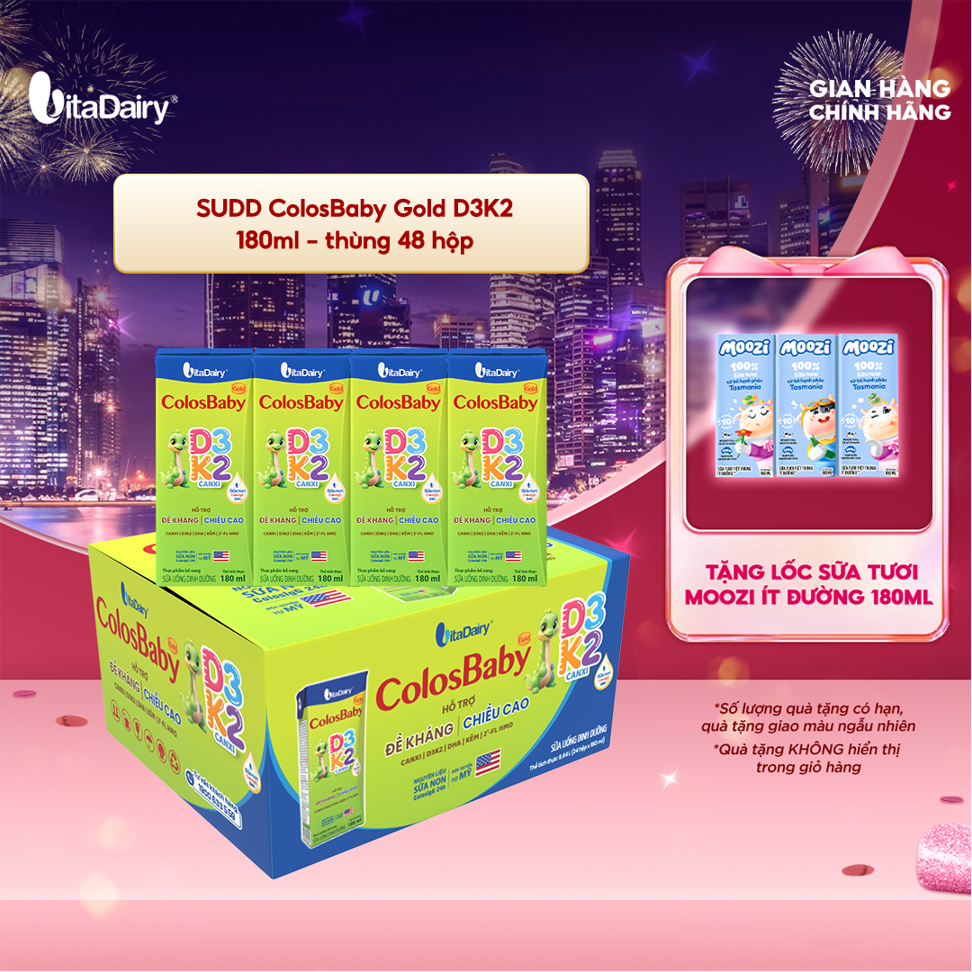 Sữa uống dinh dưỡng ColosBaby Gold D3K2 180ml - thùng 48 hộp