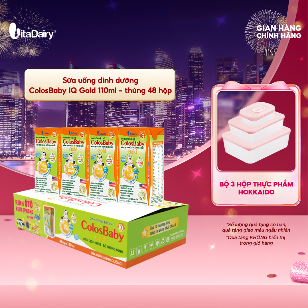 Sữa uống dinh dưỡng ColosBaby IQ Gold 110ml - thùng 48 hộp - VitaDairy