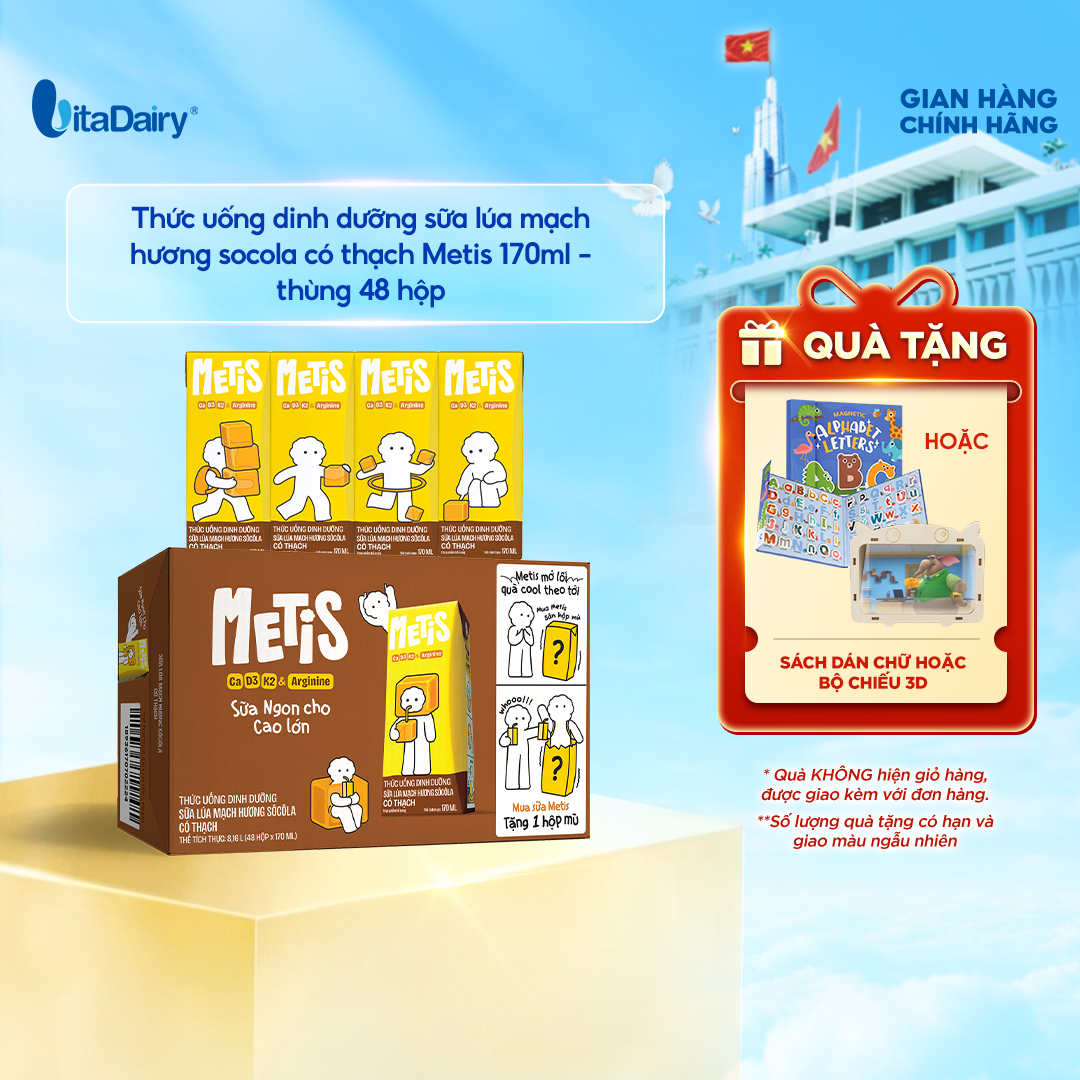 Thức uống dinh dưỡng sữa lúa mạch hương socola có thạch Metis 170ml - thùng 48 hộp