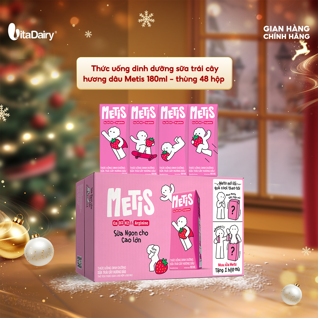 Thức uống dinh dưỡng sữa trái cây hương dâu Metis 180ml - thùng 48 hộp