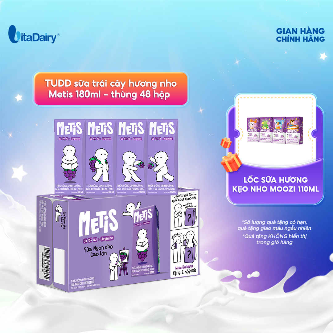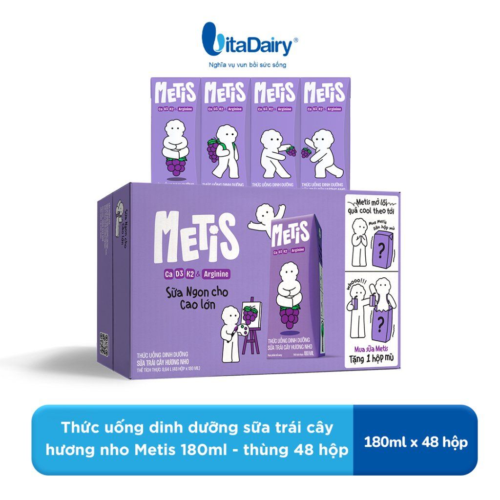 Thức uống dinh dưỡng sữa trái cây hương nho Metis 180ml - thùng 48 hộp