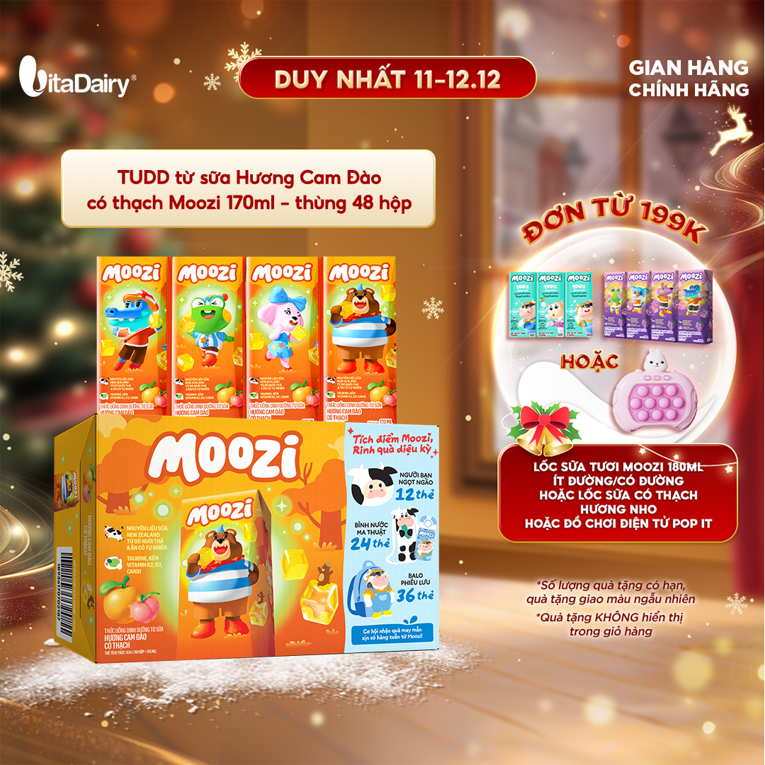 Thức uống dinh dưỡng từ sữa Hương Cam Đào có thạch Moozi 170ml - Thùng 48 hộp
