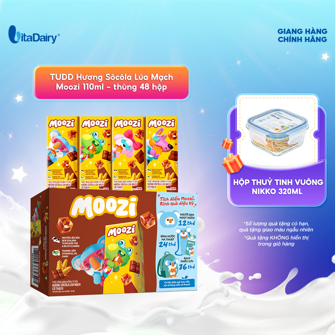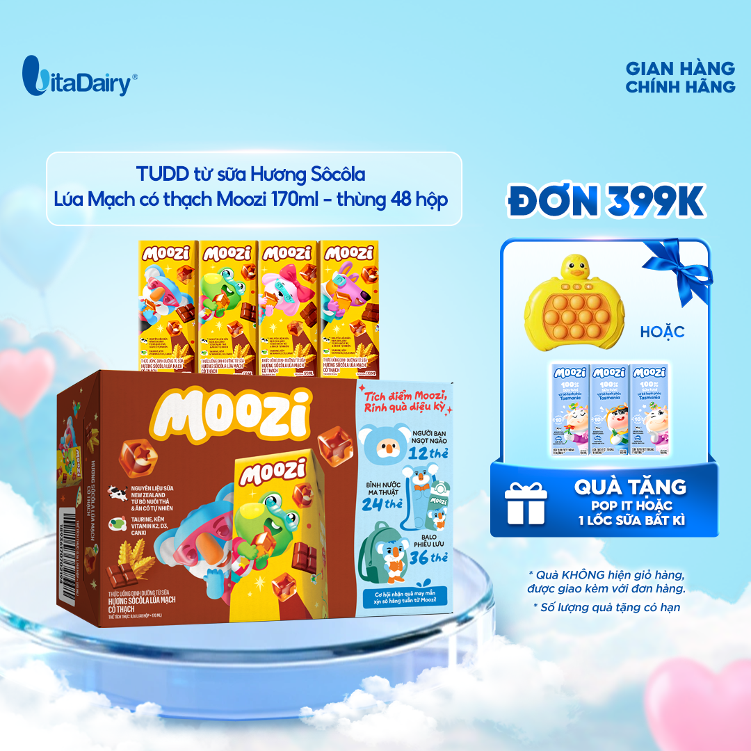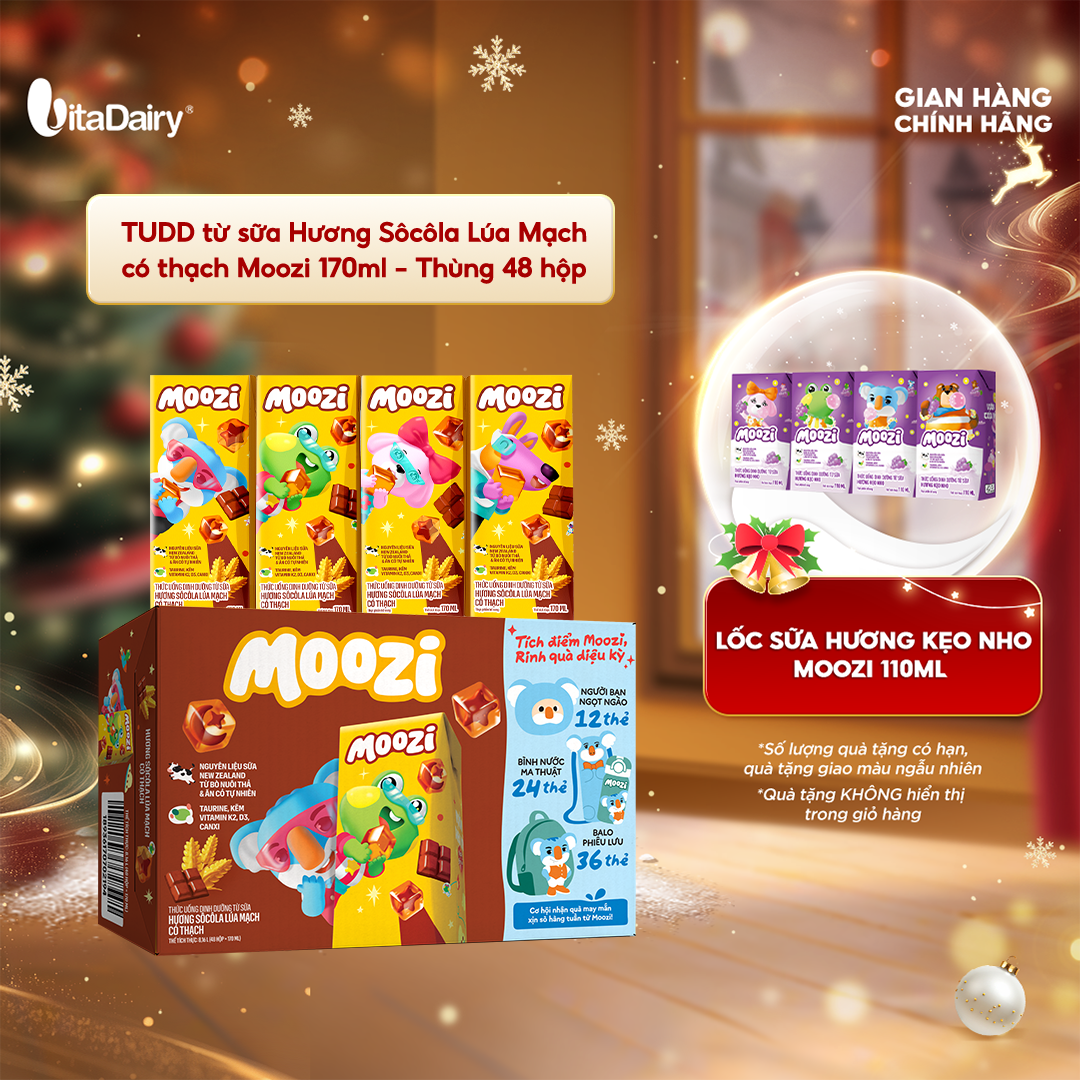 Thức uống dinh dưỡng từ sữa Hương Sôcôla Lúa Mạch có thạch Moozi 170ml - Thùng 48 hộp