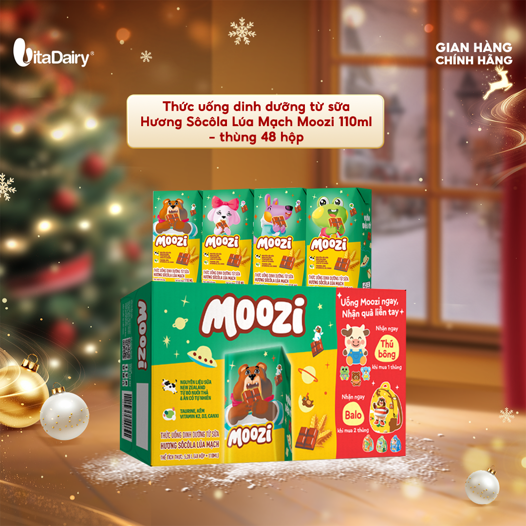 Thức uống dinh dưỡng từ sữa Hương Sôcôla Lúa Mạch Moozi 110ml - thùng 48 hộp